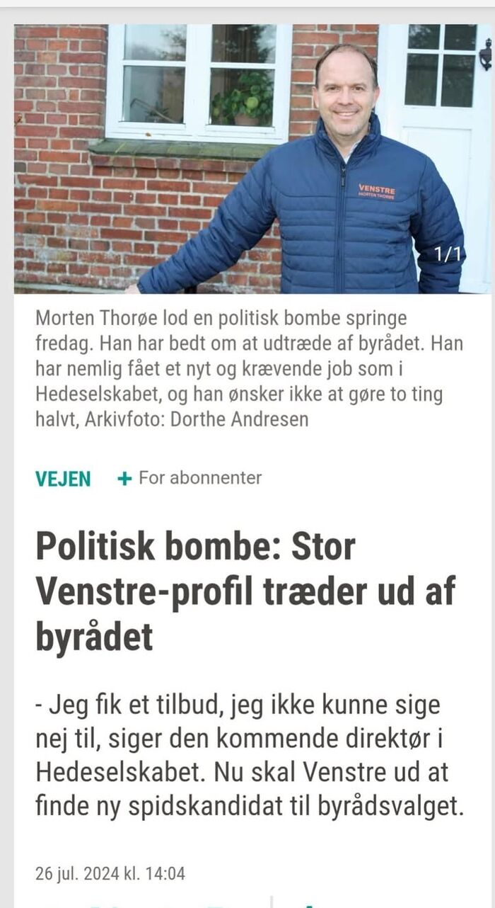 Der er nok aldrig noget tidspunkt, der er passende at stoppe på i et byråd. Men jeg tænker nu, at medio august er passende for mit vedkomne, da Venstre i Vejen kommunes gruppe således kan nå at bliver om konstitueret og blive klar til kommunalvalget i november 2025.